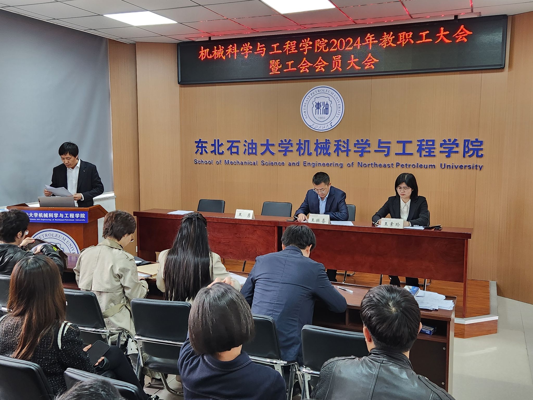 2024年4月15日,我院2024年度教职工大会暨工会会员大会在机电馆509隆重开幕,会议的主要任务是深入学习宣传贯彻党的二十大精神,全面落实学校党委工作要点、学校“十四五”发展规划纲要,围绕推进实施学院“1363”发展规划,审议2023年工作实效,部署2024年重点工作,动员和组织广大教职工,进一步明确任务,抢抓机遇、锐意创新,努力开创学院高质量发展的新局面。