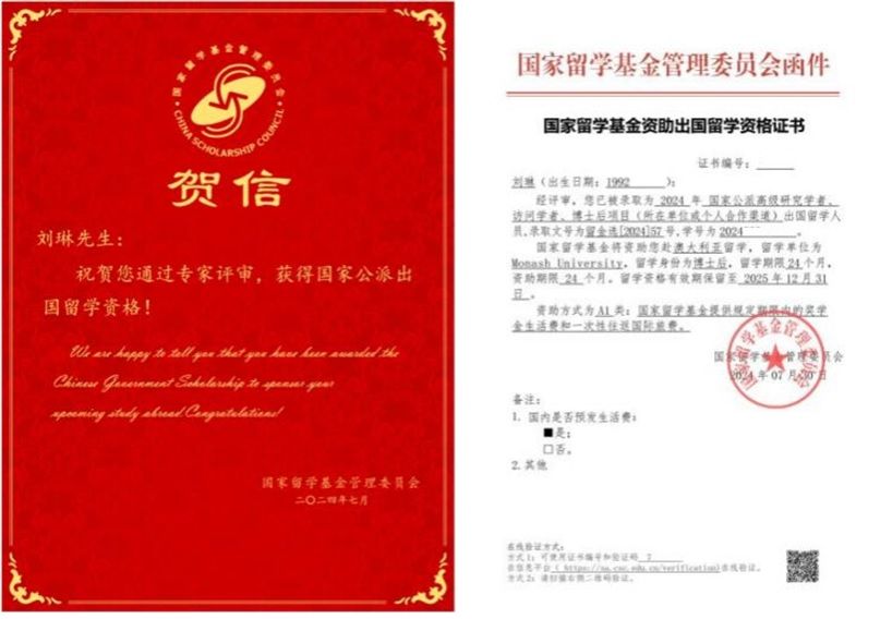 经个人申请、学校推荐及国家留学基金委评审,我院机电系教师刘琳副教授获得2024年度国家留学基金委公派出国资格,留学身份为博士后,将前往澳大利亚莫纳什大学(2024年U.S. News世界排名:35)就非均相介质分离领域开展学术研究工作,留学期限为24个月。