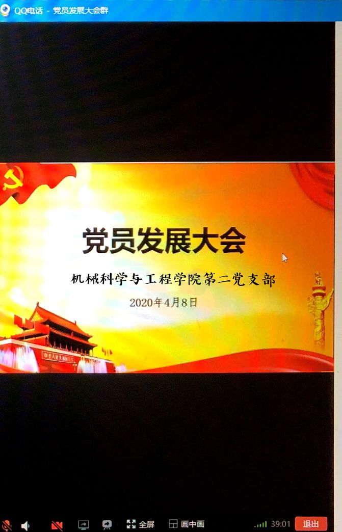 按照正式流程,大会开始由申请入党人逐一进行入党志愿书的宣读以及自己的入党动机。申请入党的同学都真情的表达了对党的向往,对党的忠诚,表示坚定不移跟党走,为党的工作付出自己的力量,为共产主义事业奋斗终生。卢梦媚老师对发展党员寄予希望,希望他们随时与党中央保持一致,为同学服务,加强自我要求,为党支部今后建设做出贡献。整个会议过程中气氛严肃而和谐。大会之后依次由各位党员干部对申请入党人的培养、教育以及政审情况提出意见。所有党员进行讨论并充分发表各自意见,申请人再次表明态度后,拥有表决权的党员对接收党员与预备党员采取了线上匿名投票进行逐一表决,最终通过了转正党员转为正式党员,积极分子转为发展对象。