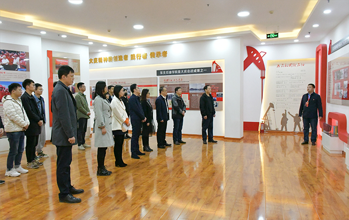 在讲解员的带领下,师生党员回顾了大庆精神铁人精神的形成、内涵与发展,深刻感悟石油大会战的峥嵘岁月、艰苦历程和广大石油人苦干实干的优良传统,了解大庆精神铁人精神如何深深植入东油人的魂魄,铸就东油人诚实、扎实、朴实、踏实的品格。