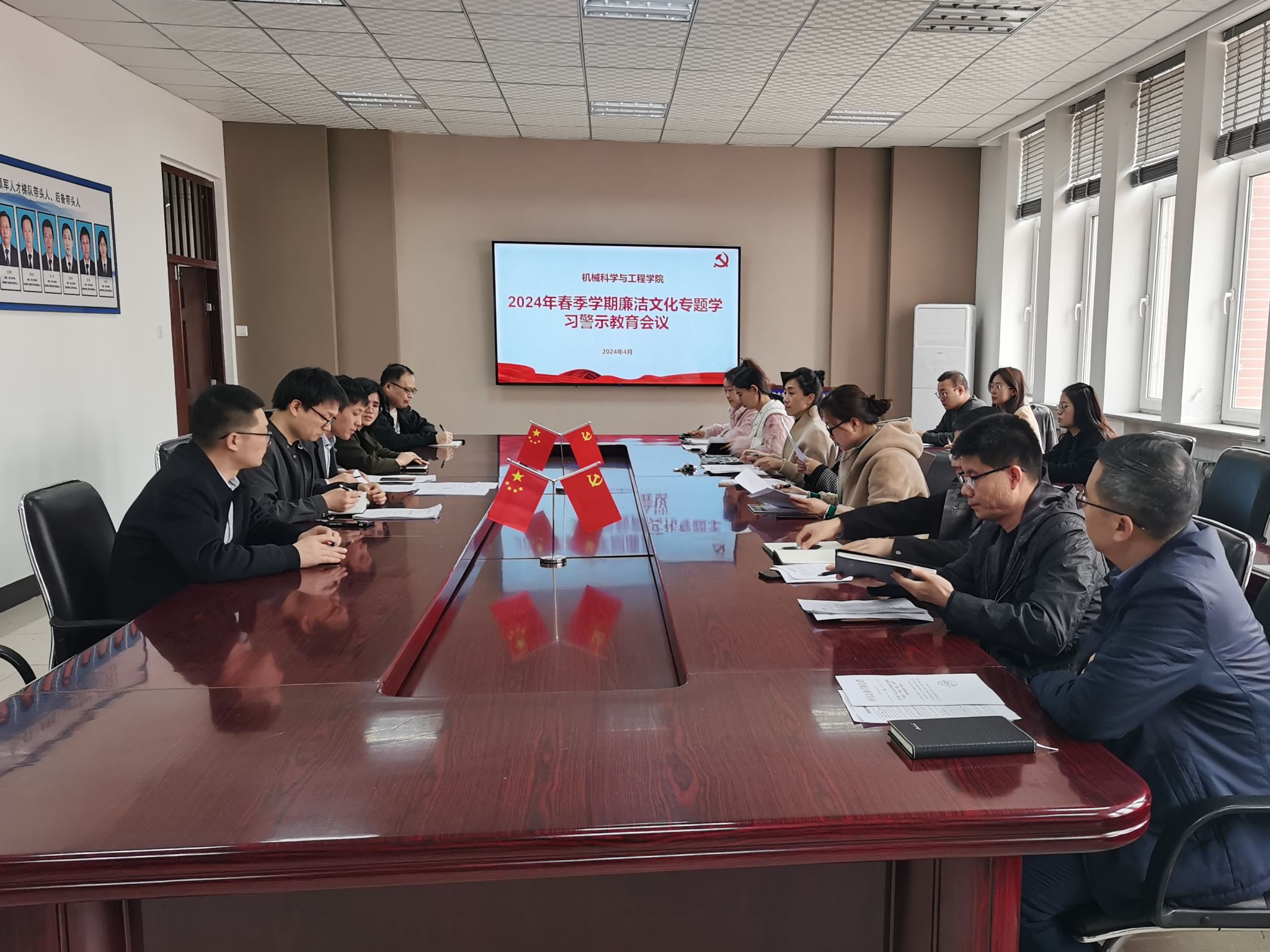 2024年4月7日,我院召开2024年春季学期廉洁文化专题学习警示教育会议。会议由学院党委书记王勇主持,学院纪委书记、领导班子、党委委员和全体师生党支部书记参加本次会议。