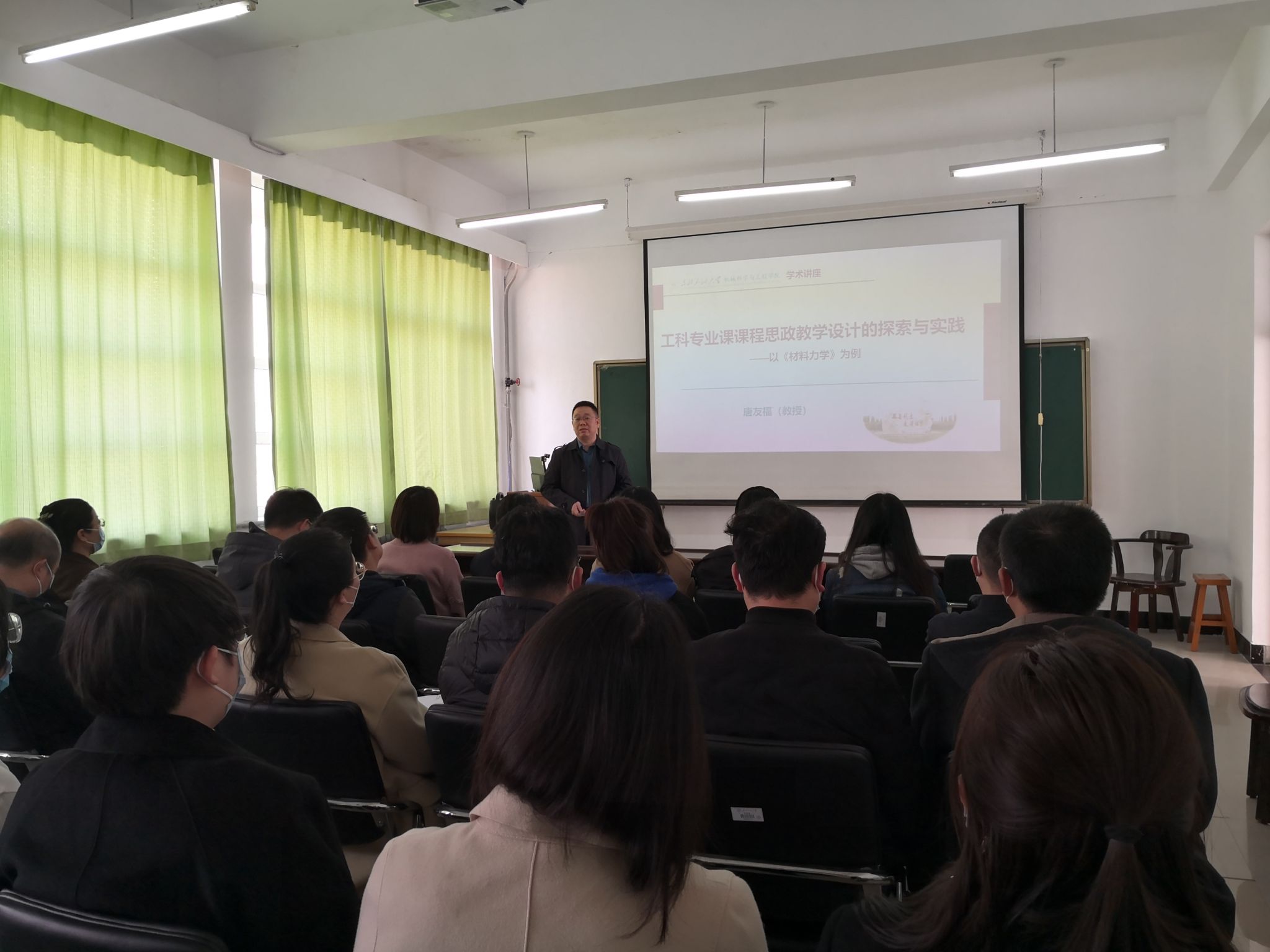 机械学院2023年3月29日下午2点在机电馆509举办教师教学能力提升培训讲座,讲座由校教学名师唐友福教授主讲,讲座题目:工科专业课程思政教学设计的探索与实践——以《材料力学》为例。唐友福教授报告内容丰富,包括初心与使命,理念与方法,探索与实践等方面,详细讲解了为什么,怎么做,做什么的问题。