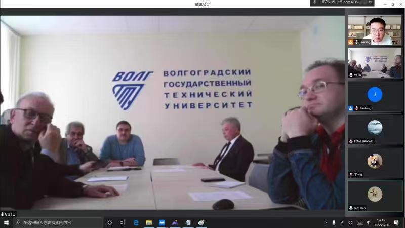 5月26日北京时间下午2点/莫斯科时间上午9点,我院和俄罗斯-伏尔加格勒州立技术大学进行中外合作办学工作交流推进会,会议由国际交流合作处副处长冯建伟主持,俄罗斯-伏尔加格勒州立技术大学国际合作副校长阿列克谢·戈登科,国际学生培训学院副院长拉希德·加吉耶夫,国际关系办公室主任格里戈里·博伊科,材料科学和复合材料系主任列奥尼德·古列维奇,副主任德米特里·普罗尼切夫,我校永利集团304院长姜民政教授,副院长丁宇奇教授,材料科学与工程系主任叶卫东及副主任陈桂娟出席会议。
