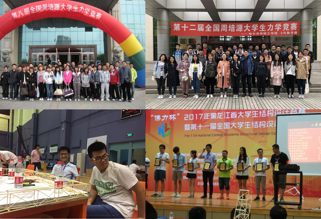 注重学生创新实践能力培养,组织学生积极参加国家级周培源力学大赛、数学建模大赛、全国大学生工程训练综合能力竞赛、黑龙江结构设计大赛、大学生互联网+等,获得国家级和省级各类奖项60余项。